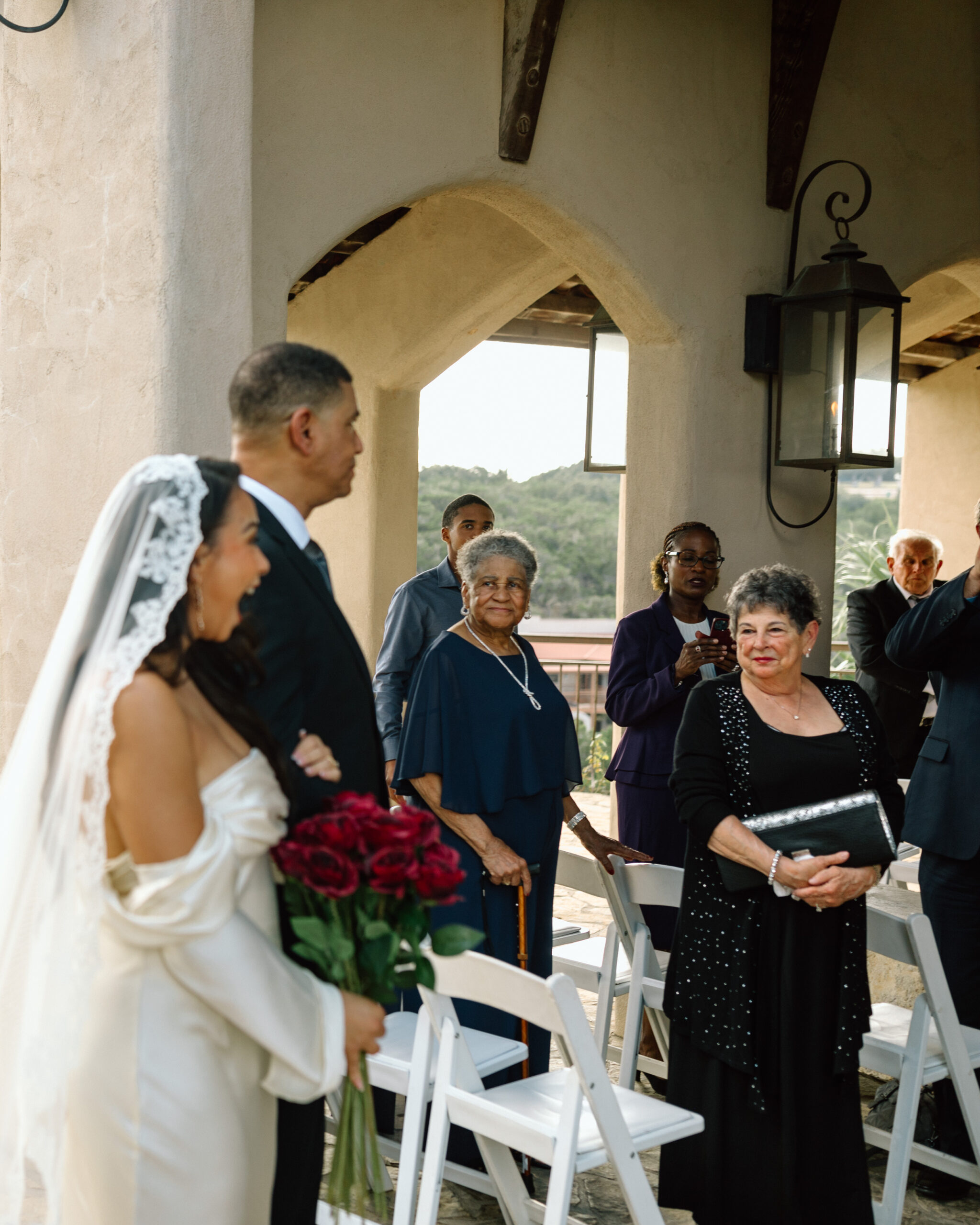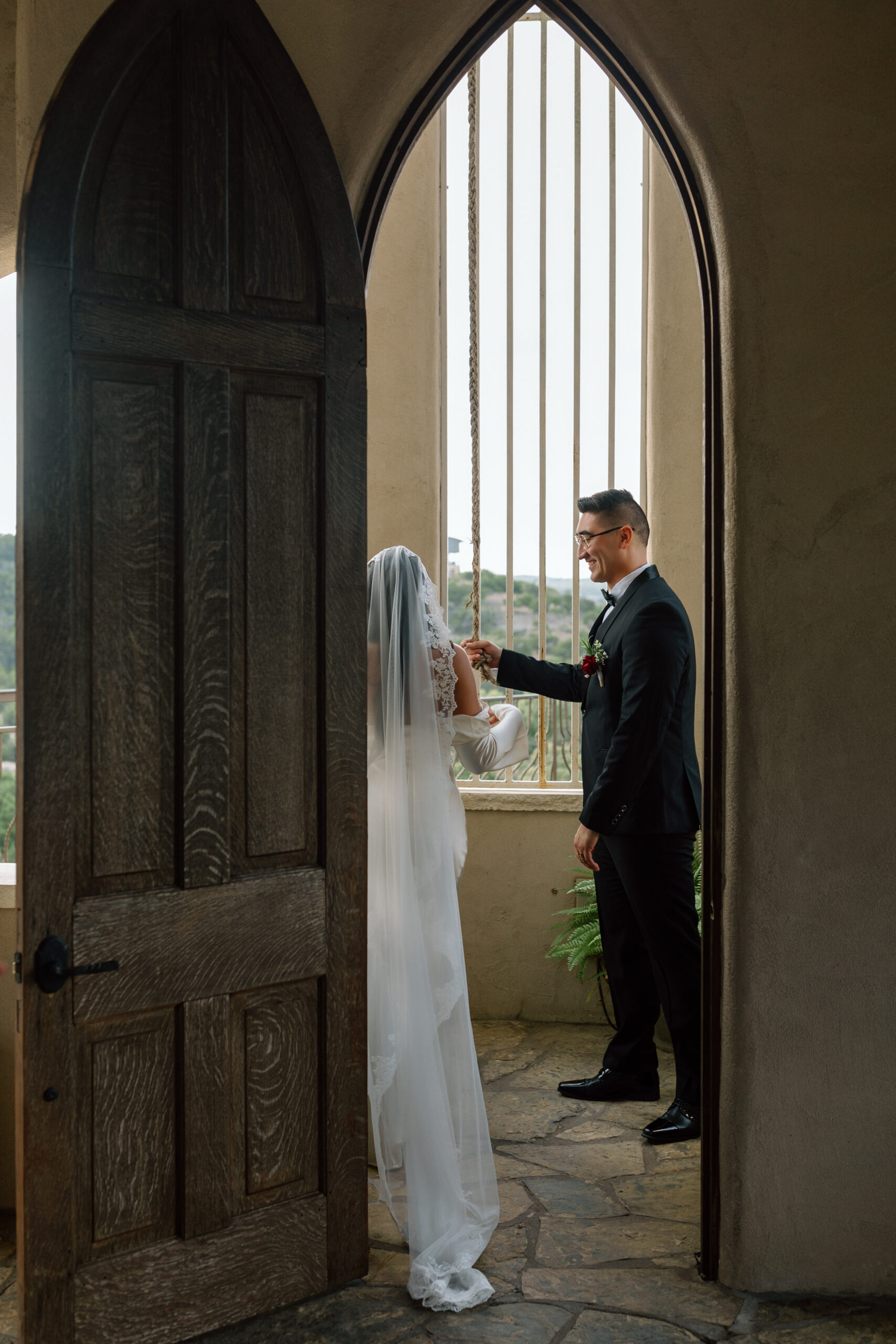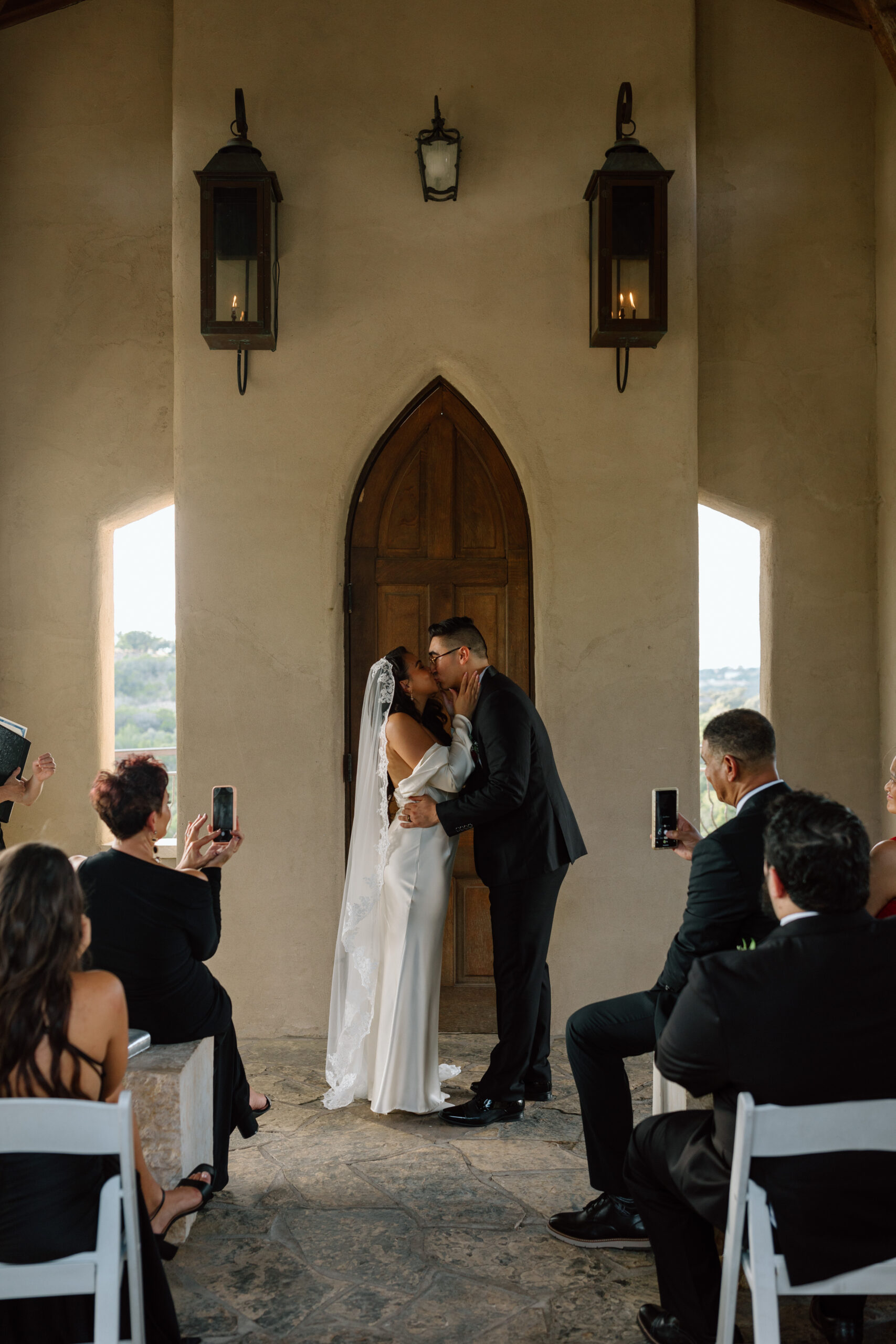 Following our quick touch ups, Paige and Brian made their way to their sunset ceremony at the chapel. A wedding ceremony typically lasts around 25 minutes from start to finish. This depends on what you choose to have a part of your nuptials. After the ceremony, we head directly into formal family photographs with those they chose to have join them on their special day! Because this was an intimate wedding (with about 25 guests), we have time for individual photos with everyonewithout compromising time for the couple! Following family photographs with the Texas hill country as our backdrop we sent the family to their reception space also on-site. I’ll let their portraits speak for themselves. We shared some breathtaking scenery, along with a few quiet moments before joining the party again.