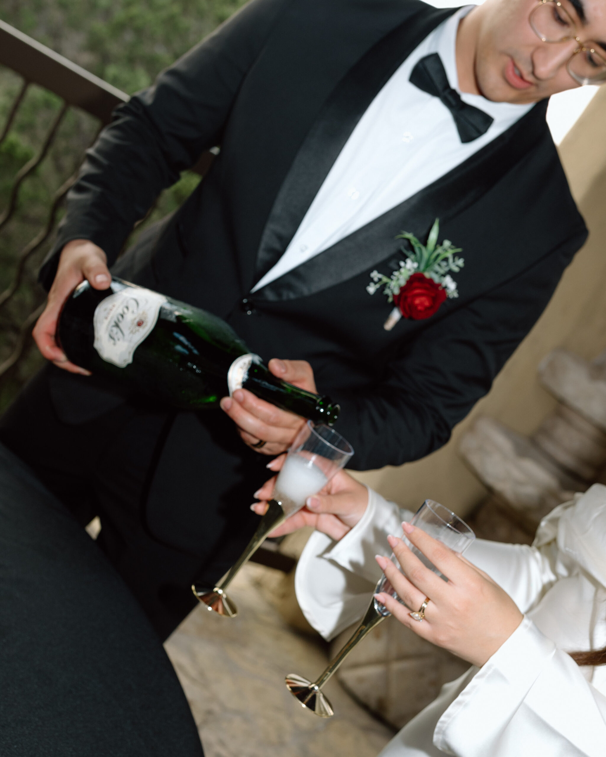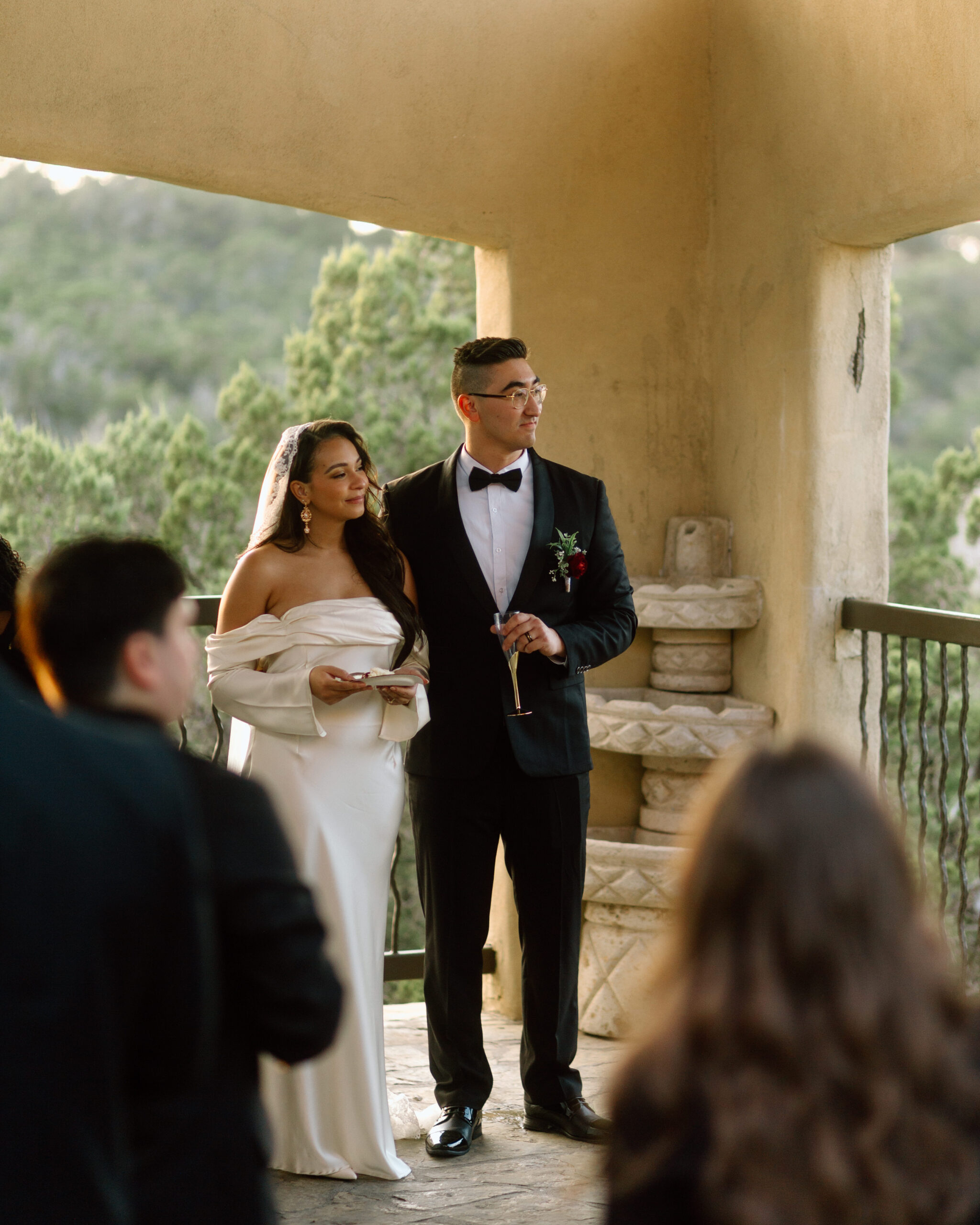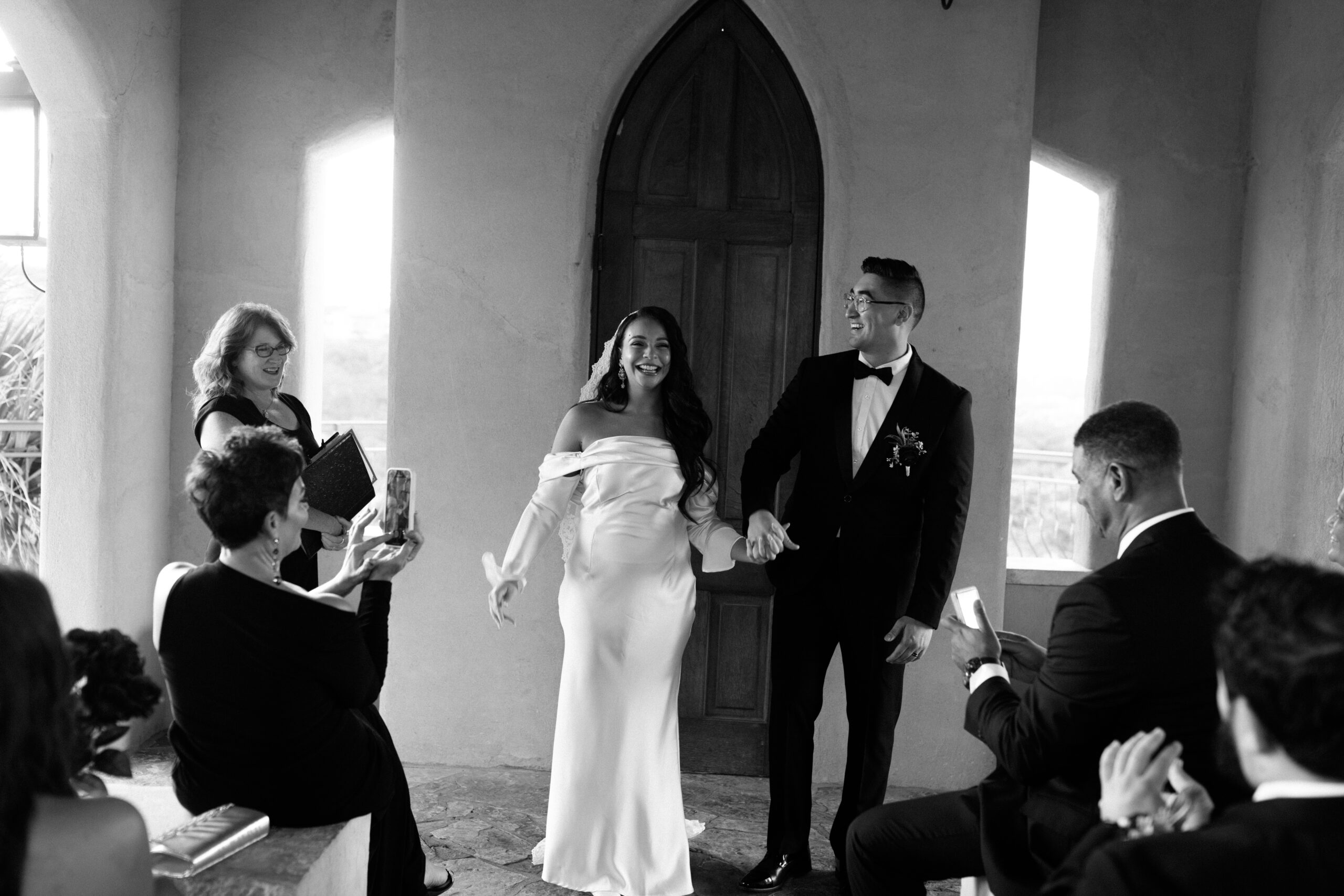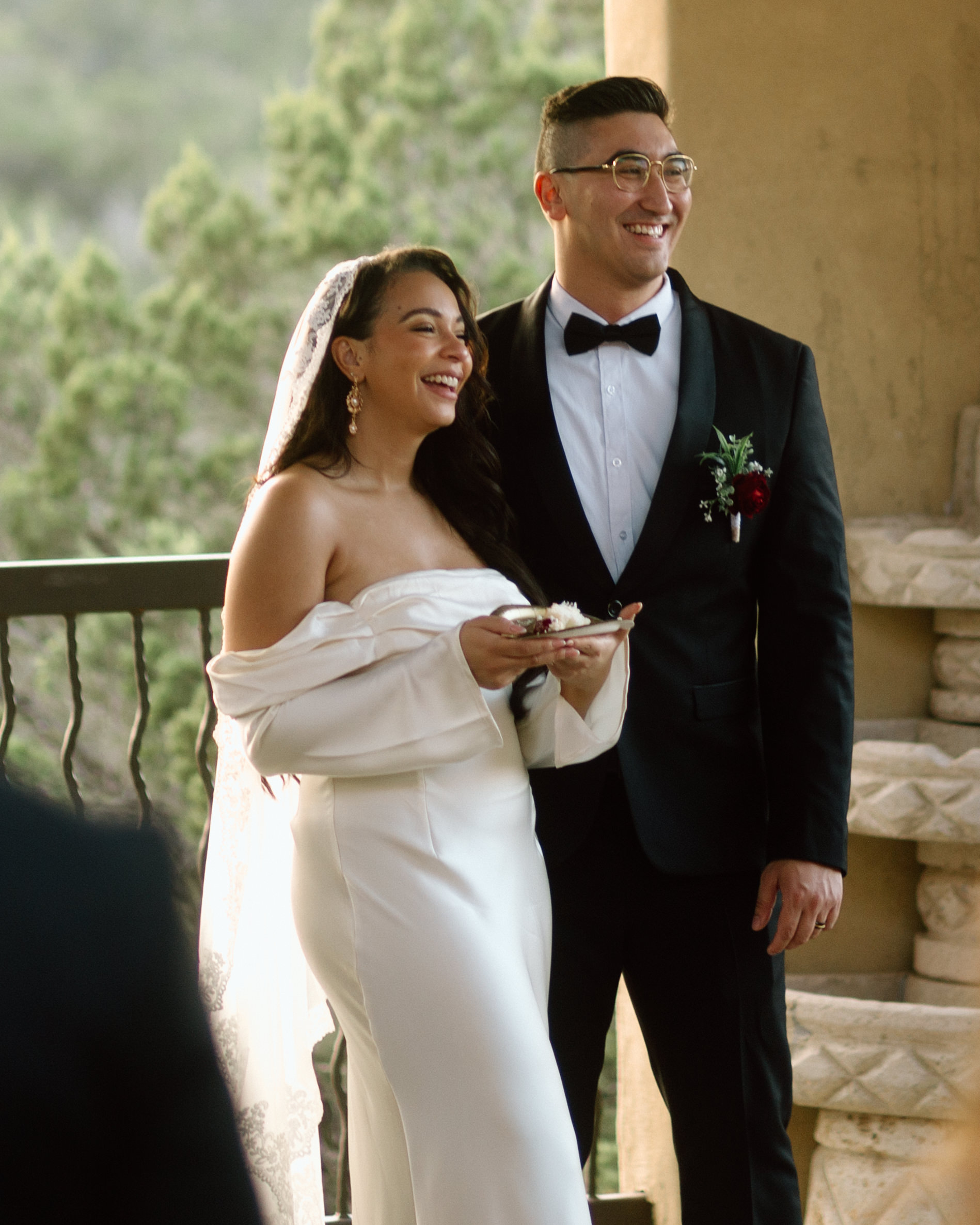 At this point we are done with their sunset portraits at Chapel Dulcinea. We made our way back to the on-site reception space to celebrate with champagne, cake, and words from their loved ones! Our photography time ends here.
