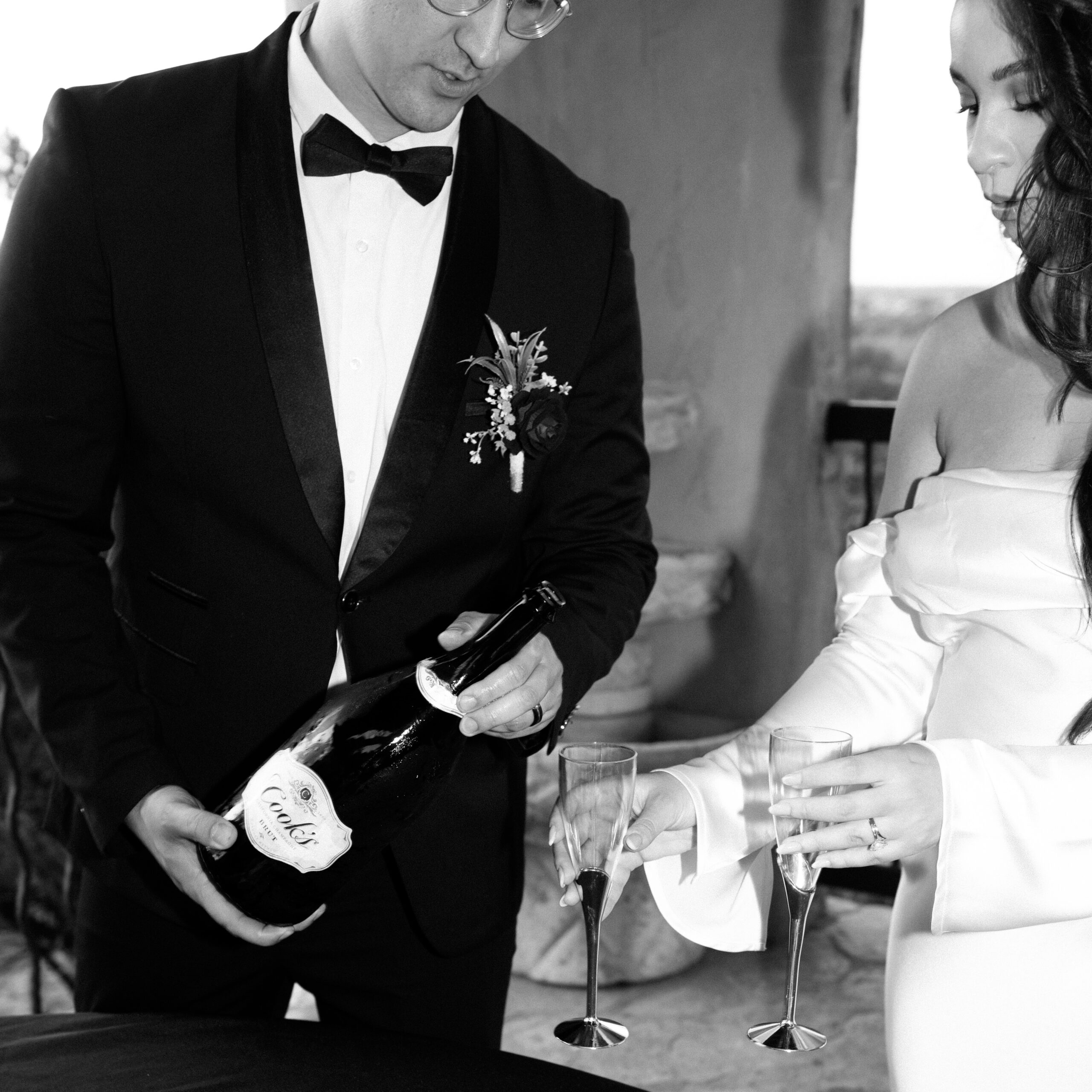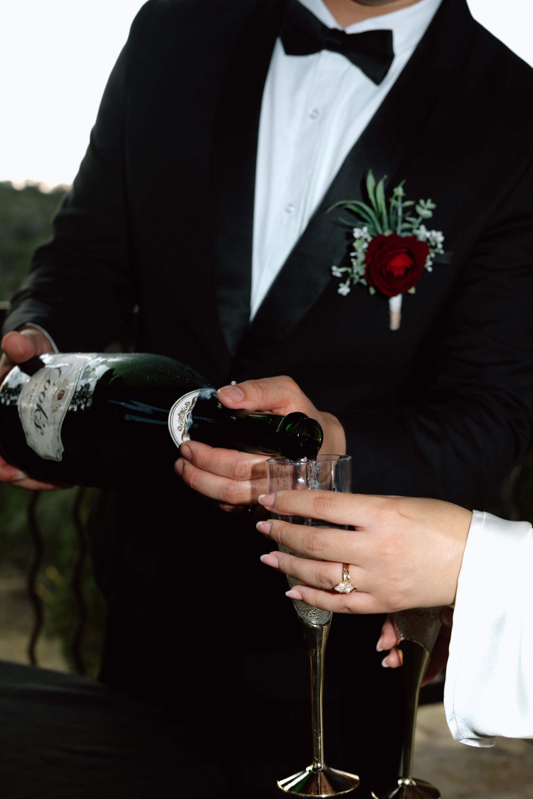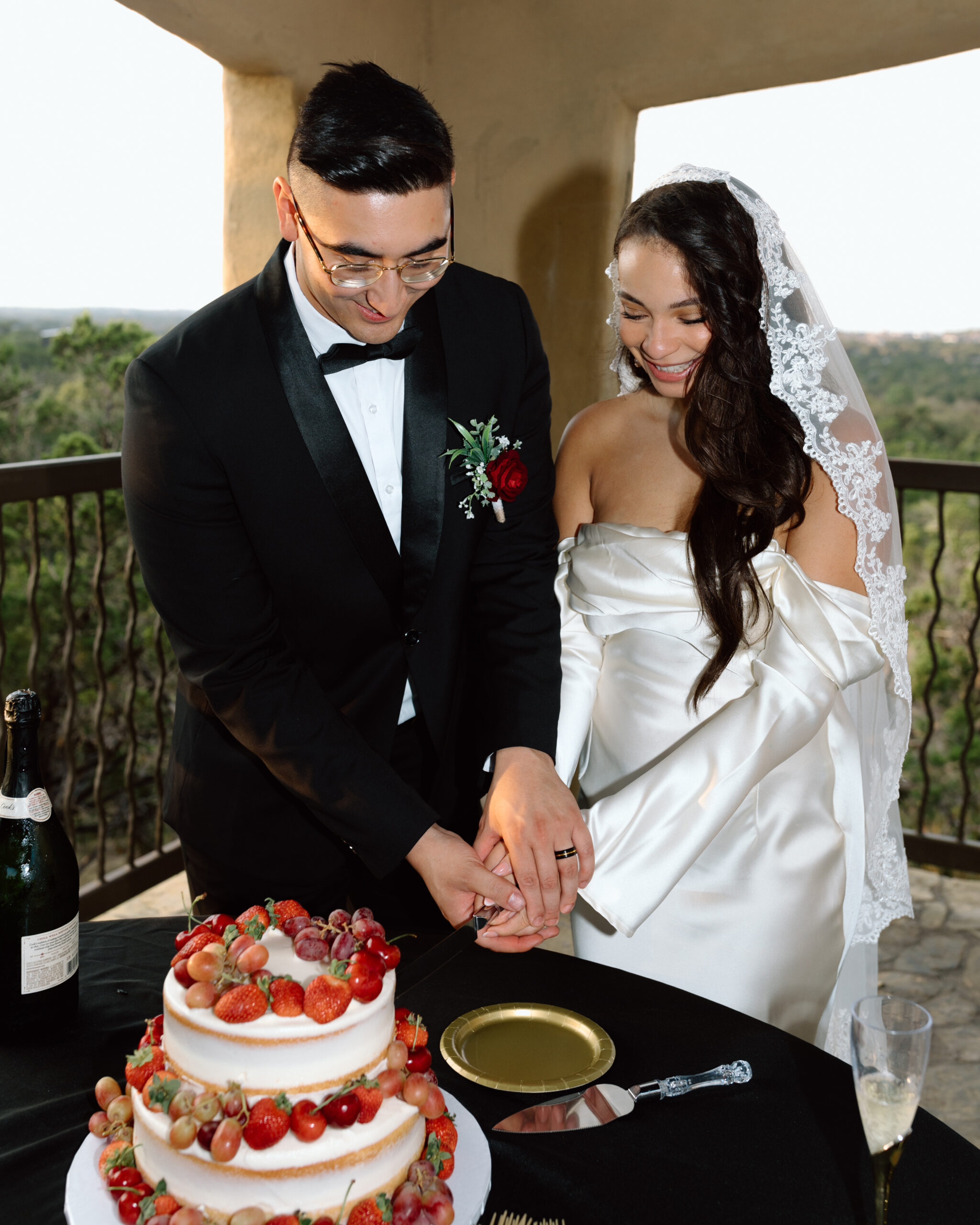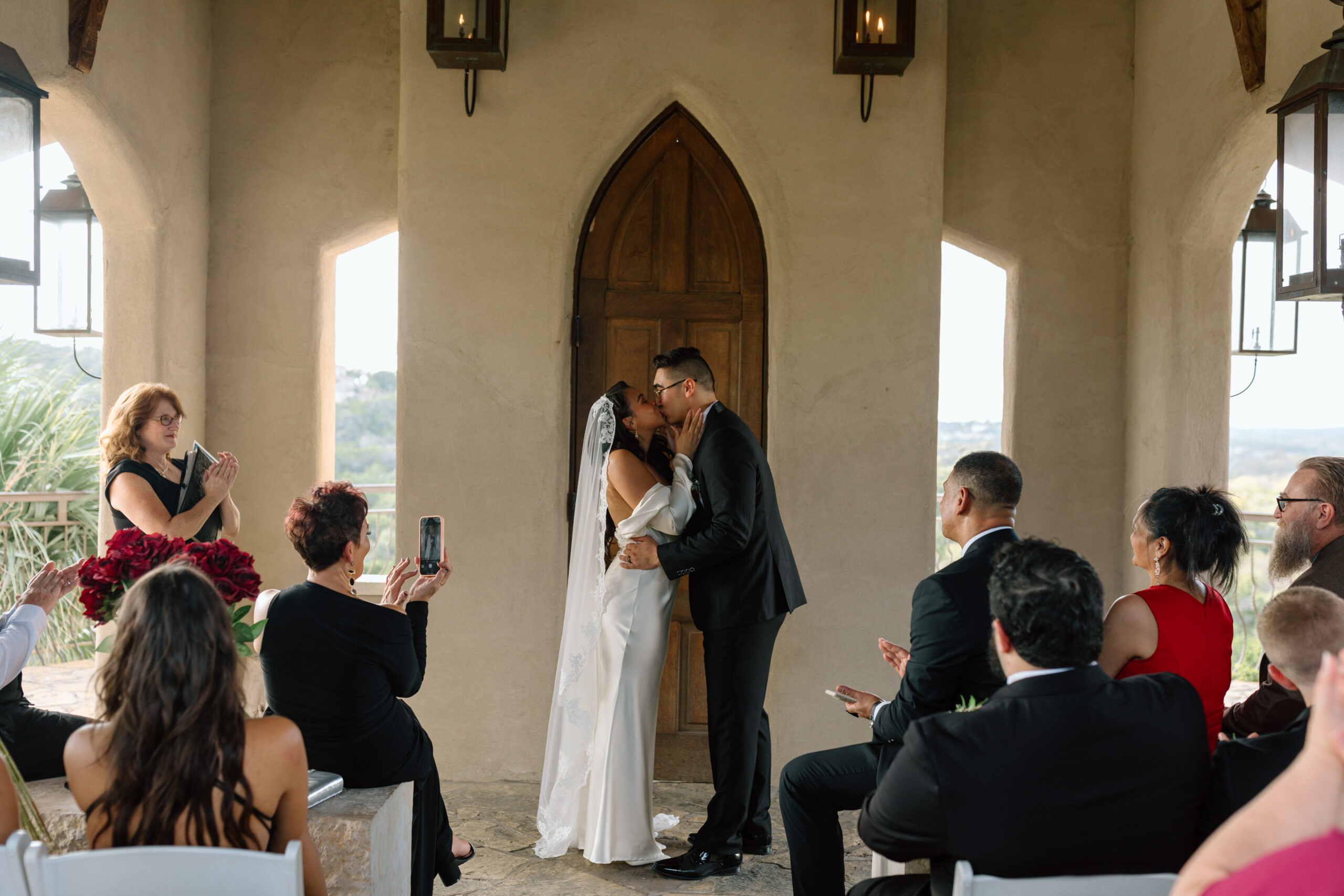 At this point we are done with their sunset portraits at Chapel Dulcinea. We made our way back to the on-site reception space to celebrate with champagne, cake, and words from their loved ones! Our photography time ends here.
