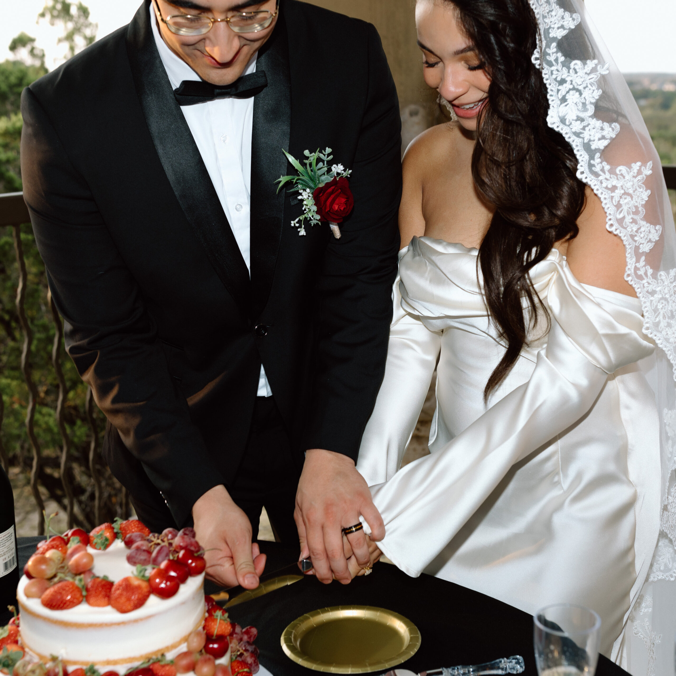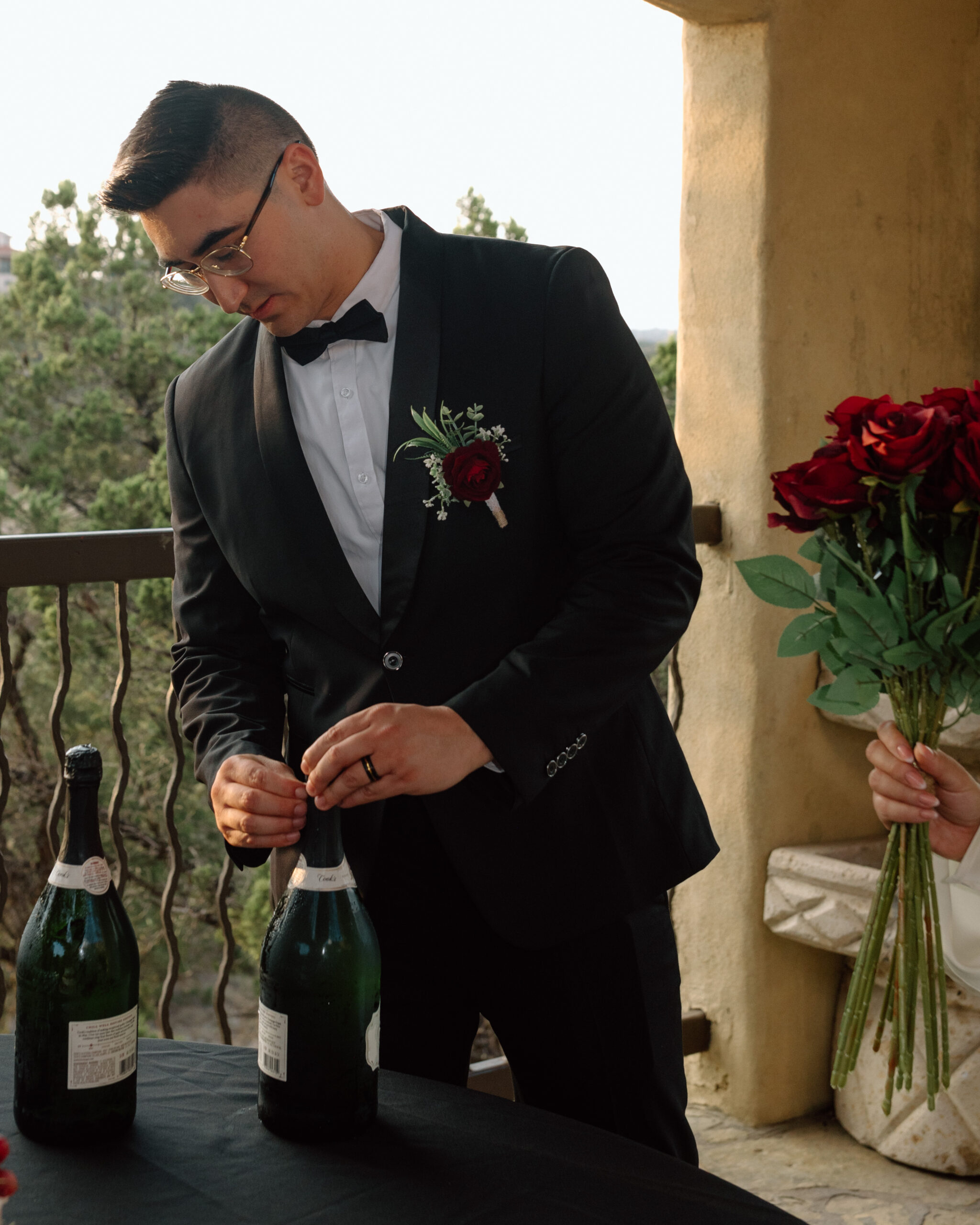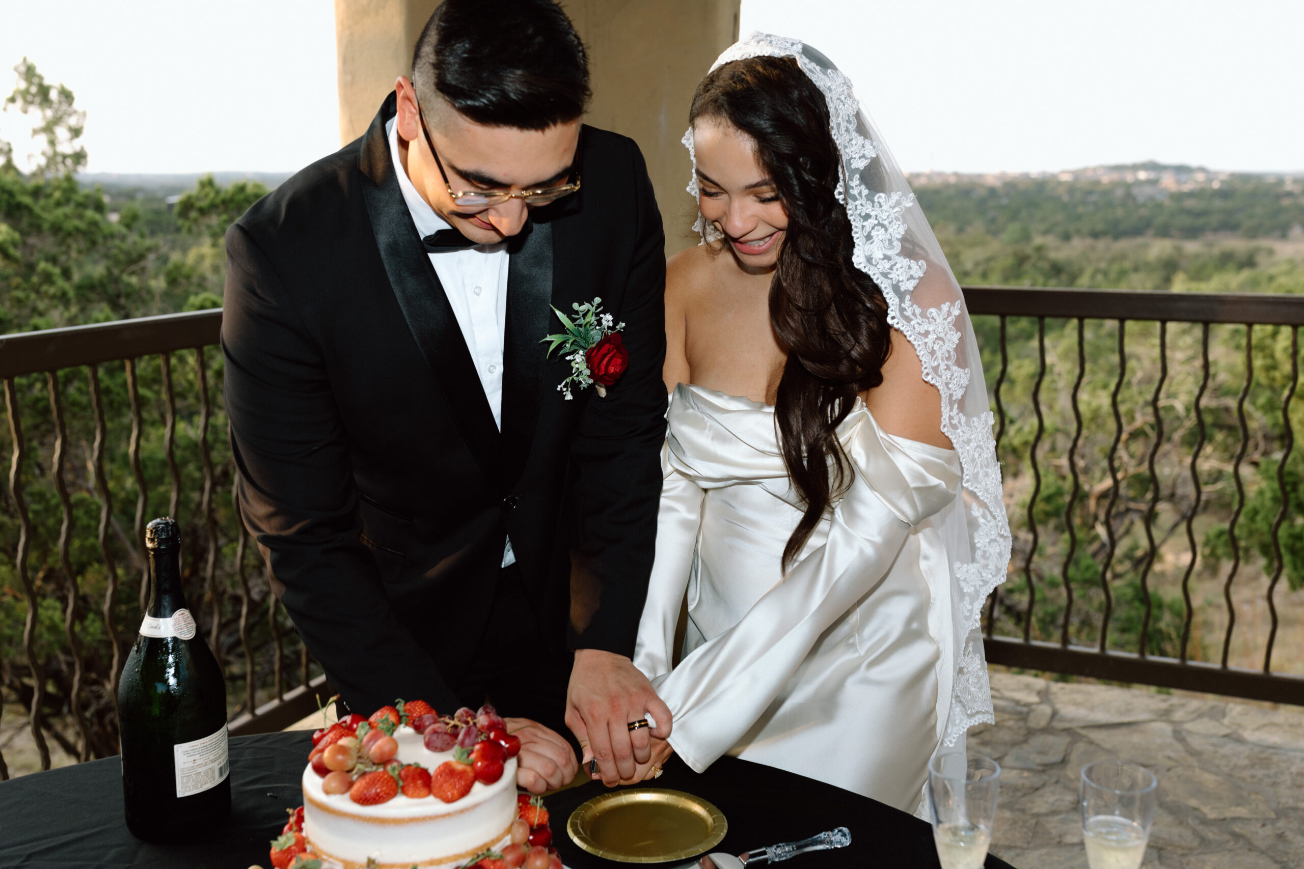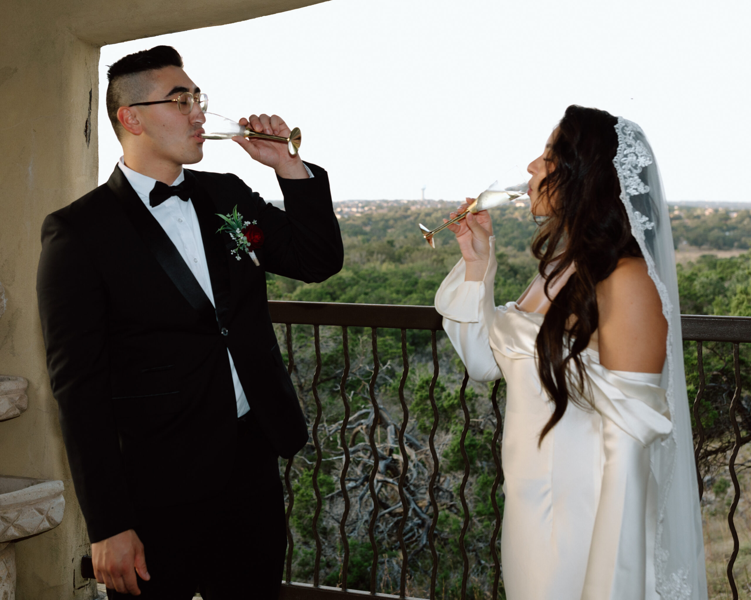 At this point we are done with their sunset portraits at Chapel Dulcinea. We made our way back to the on-site reception space to celebrate with champagne, cake, and words from their loved ones! Our photography time ends here.